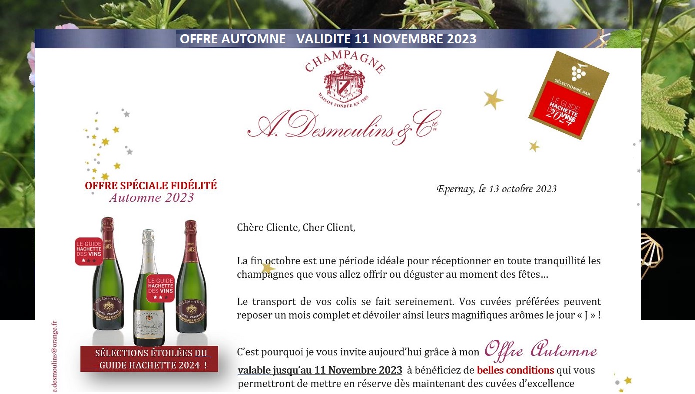 Slide Slide ![]() L'ABUS D'ALCOOL EST DANGEREUX POUR LA SANTÉ. A CONSOMMER AVEC MODÉRATION CHAMPAGNE ![]() ![]() Livraison partout