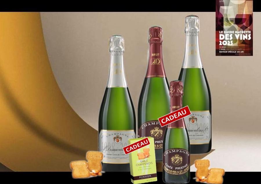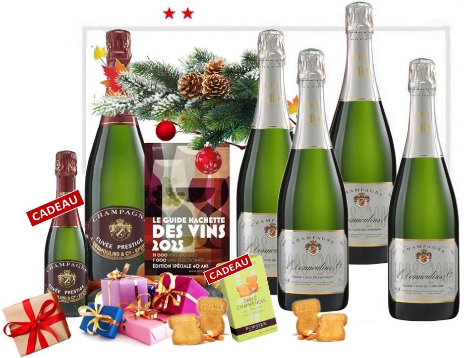 SURPRISES DE NOËL : 4 bouteilles Cuvée Centenaire Brut + 1 bouteille Cuvée Prestige Brut + 1 demi-bouteille Prestige OFFERTE + étui Sablés au Champagne OFFERT !